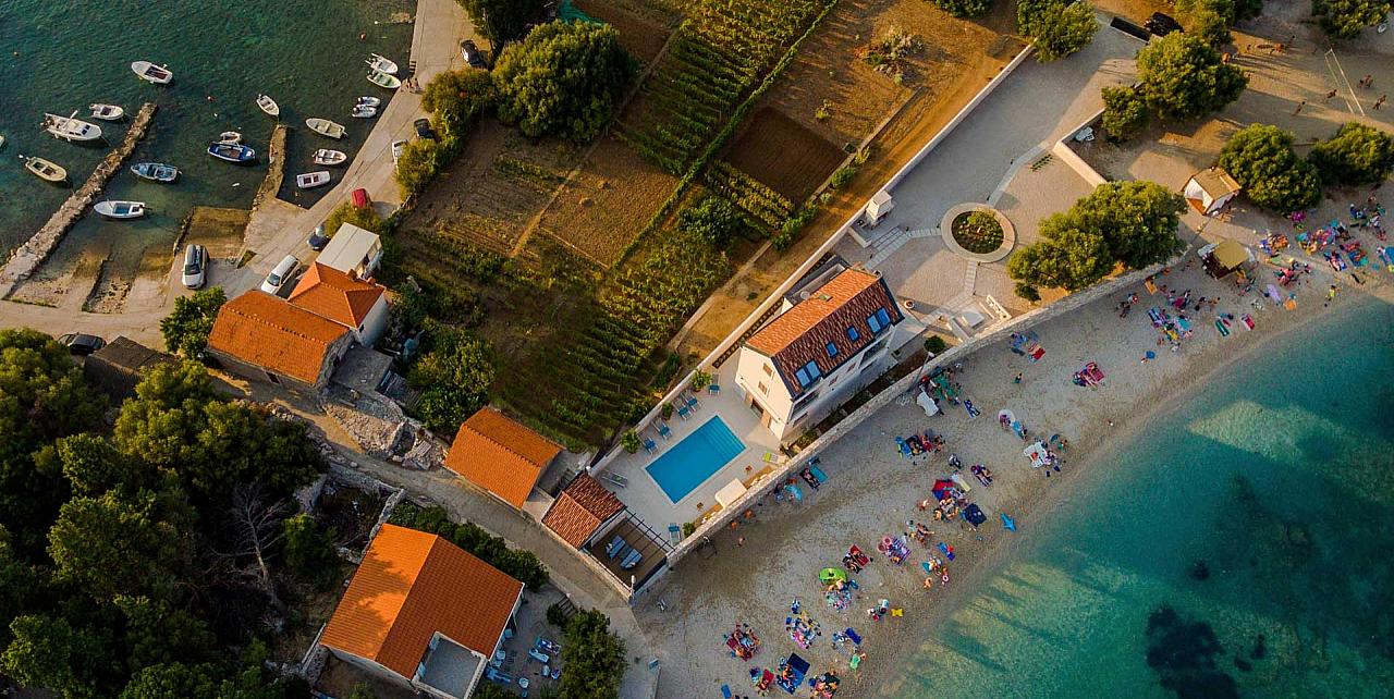 Prizba consists of several smaller bays: Podjamje, Danca, Mala and Velika Prizba and two peninsulas: Ratak and Priscapac. Priscapac is also a tourist resort with a pebble beach and accompanying tourist facilities. On both sides of the Ratak peninsula there are also pebble beaches, and nearby there is a car camp, restaurants, a coffee bar, a post office and smaller shops. There is also a small monastery of the Daughters of Mercy on Ratko, where Mass is held every Sunday. At Prizba you can rent a motor boat with which you can go on a trip to the islands that are about 800 m away from the coast. The islands are Vrhovnjak, Sritnjak, Crklica and Stupa, they are uninhabited and have many places suitable for swimming and sunbathing. There is also a diving center on the Priscapac peninsula. The professional staff organizes diving trips and holds diving courses.