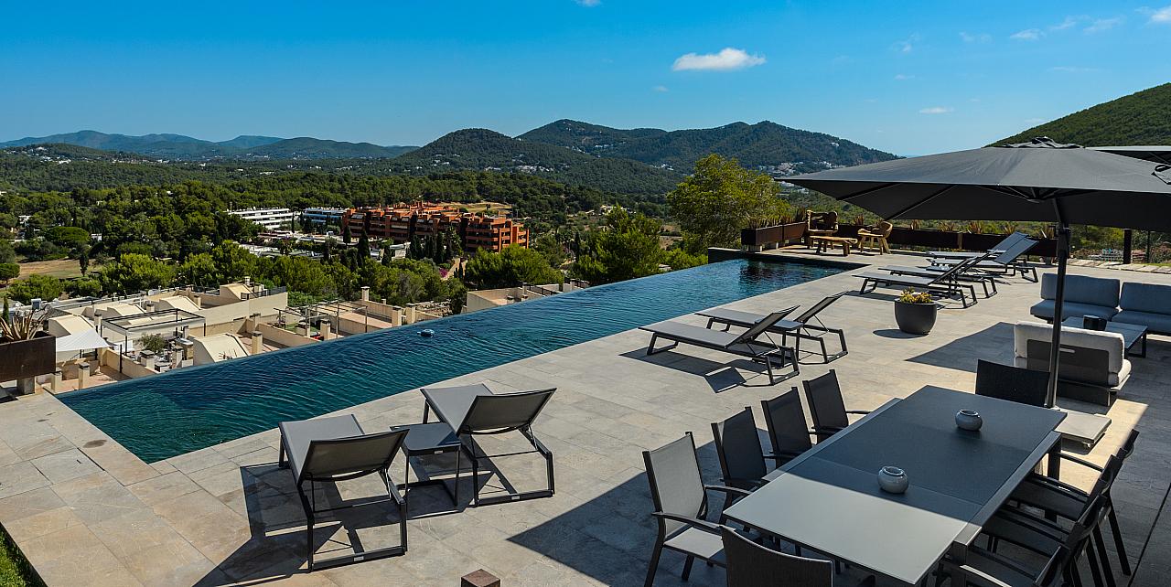 Expansive terrace with an elegant infinity pool, perfect for relaxing under the Ibiza sun.