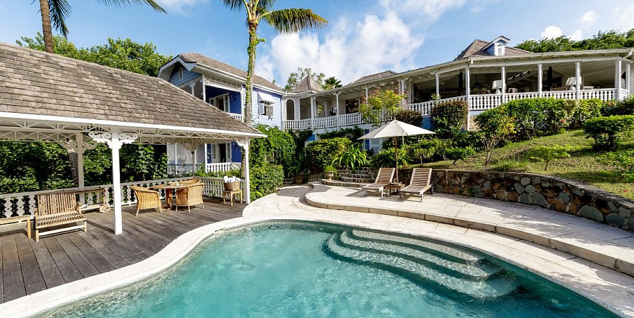On arrival, you will instantly feel you have been welcomed to your own private estate ; a collection of inter-leading wooden cottages with gingerbread fretwork housing an open-plan living and formal dining room with fabulous views of the ocean and beautifully landscaped gardens with 2 swimming pools.